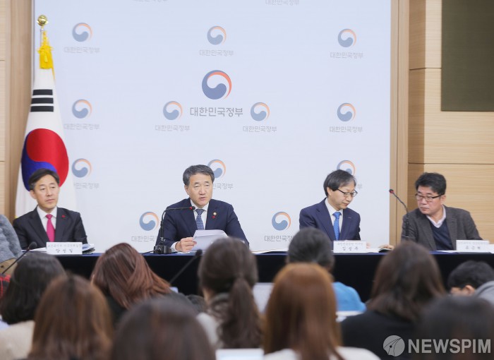 [서울=뉴스핌] 윤창빈 수습기자 = 박능후 보건복지부 장관(왼쪽 두번쨰)이 14일 오전 서울 종로구 정부서울청사 브리핑룸에서 ‘국민연금 종합운영계획안’을 발표하고 있다. 2018.12.14 pangbin@newspim.com