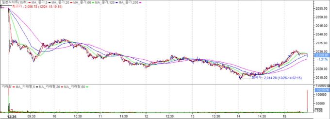 [서울=뉴스핌] 김민경 기자 = 26일 한국 증시는 글로벌 증시를 덮친 '블랙 크리스마스' 여파로 2020대로 떨어졌다. 지난달 1일 이후 약 두달 만에 최저치다.
