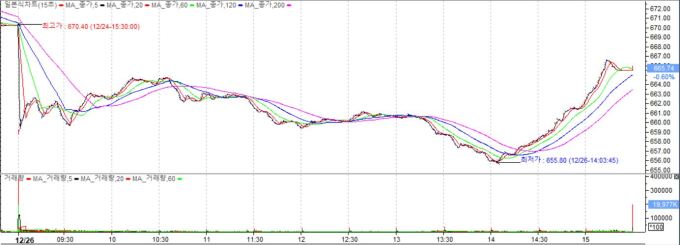 이날 코스닥은 전 거래일 대비 4.05포인트(0.60%) 내린 665.74에 마감했다. 개인이 3486억원 순매도했으며 외국인과 기관이 각각 272억, 3338억원 사들였다.