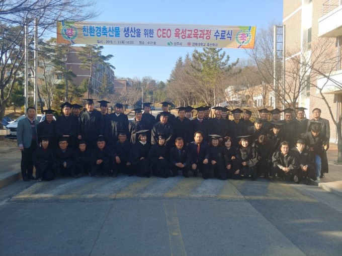 이번 교육 과정은 상주시에서 축산 CEO 육성을 위해 경북대학교 산학협력단에 위탁한 것이다. 지난 4월부터 10개월간 관내 브랜드 회원 농가 60명을 대상으로 친환경 축산 정책, 동물복지 및 친환경 고급육 생산, 축산 CEO가 갖추어야 할 소양 강좌 등 친환경 축산물 생산에 필요한 교과 과정으로 운영됐다.