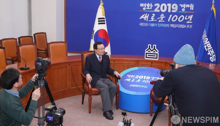 [서울=뉴스핌] 윤창빈 수습기자 = 이해찬 더불어민주당 원내대표가 8일 오전 서울 여의도 국회의사당에서 유튜브 ‘씀’ 촬영을 하고 있다. 2019.01.08 pangbin@newspim.com