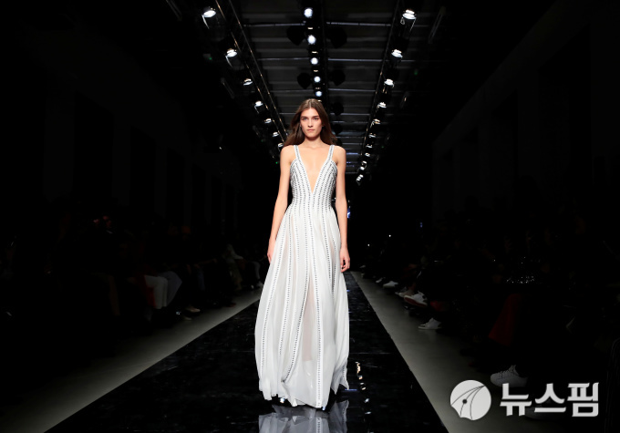 [파리 로이터=뉴스핌] 남혜경 인턴기자 = 21일(현지시간) 프랑스 파리에서 브랜드 '아자로'(Azzaro)의 디자이너 막시 시모엔스의 '2019 S/S 오트쿠튀르' 컬렉션이 공개되고 있다. 2019.01.21. |