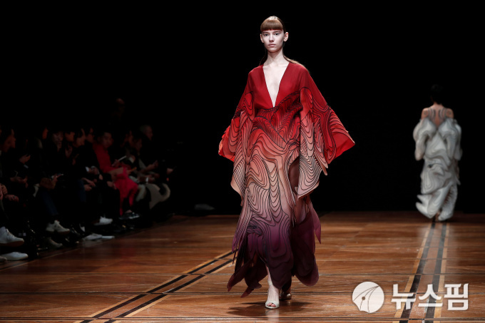 | [파리 로이터=뉴스핌] 정윤영 인턴기자 = 21일(현지시각) 프랑스 파리에서 네덜란드 디자이너 아이리스 반 헤르펜의 2019 S/S 오트쿠튀르 컬렉션이 공개되고 있다. 2019.01.21. |