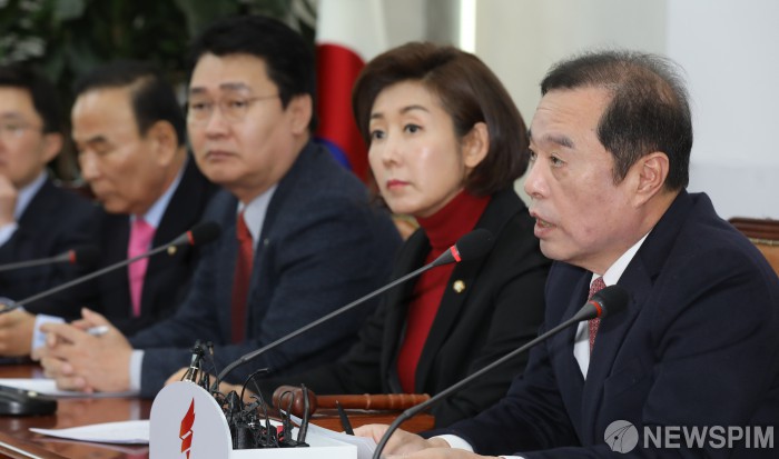 [서울=뉴스핌] 최상수 기자 = 김병준 자유한국당 비상대책위원장이 18일 오전 서울 여의도 국회에서 열린 비상대책위원회의에서 발언하고 있다. 2019.02.18 kilroy023@newspim.com