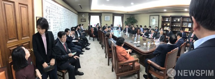[서울=뉴스핌] 나경원 자유한국당 원내대표를 비롯해 소속 의원들이 26일 서울 서초구 대검찰청을 항의 방문, 문무일 검찰총장과의 면담을 요구하고 있다. 한국당 의원들은 환경부 블랙리스트 의혹 등에 대한 검찰의 엄정한 수사를 촉구하며 대검찰청을 항의 방문했다. 2019.02.26 [사진=자유한국당 제공]