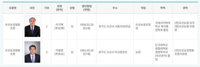 | 3.13 전국동시조합장선거 오산농협 협동조합 후보자 명단 [사진=중앙선거관리위원회] |