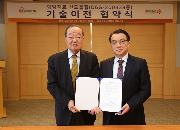 LSK NRDO는 동국대학교 산학협력단과 고형암 치료제 후보물질 ‘DGG-200338’의 특허 및 기술에 대한 양도계약을 체결했다.