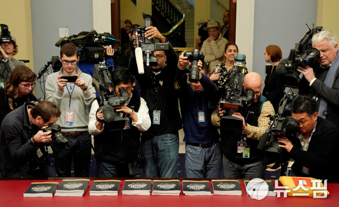 | [워싱턴 로이터=뉴스핌] 황숙혜 기자 = 도널드 트럼프 미국 대통령의 2020 회계연도 예산안이 의회에 도착하자 기자들이 몰려들어 사진을 촬영하고 있다. 2019. 03. 11. |