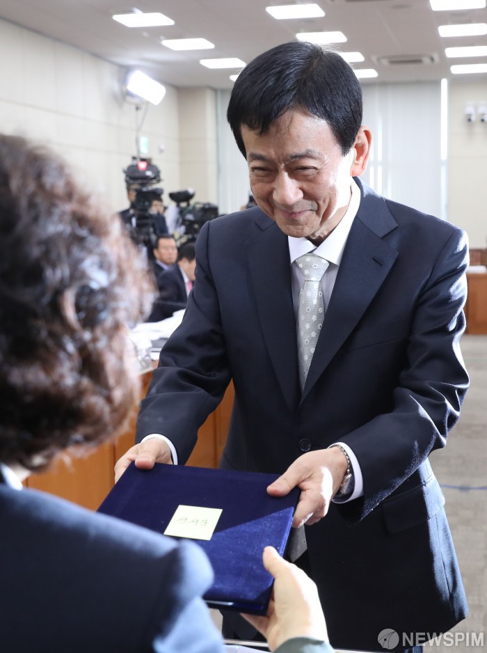 [서울=뉴스핌] 김학선 기자 = 진영 행정안전부 장관 후보자가 27일 국회에서 열린 인사청문회에서 선서문을 제출하고 있다. 2019.03.27 yooksa@newspim.com
