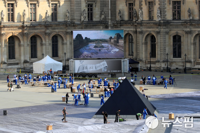 | [파리 로이터=뉴스핌] 김민정 기자 = 29일(현지시간) 프랑스 거리 예술가 JR이 루브르 박물관 유리 피라미드 설치 30주년을 기념해 프로젝트를 진행 중이다. 2019.3.29. |