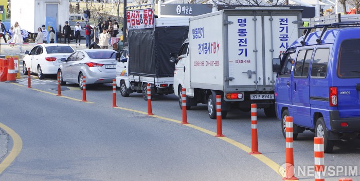 [서울=뉴스핌] 백인혁 인턴기자 = 5일부터 개막되는 여의도 벚꽃축제에 앞서 4일 오후 서울 영등포구 여의도 한강공원 주차장입구가 벌써부터 혼잡을 빚고 있다. 2019.04.04 dlsgur9757@newspim.com