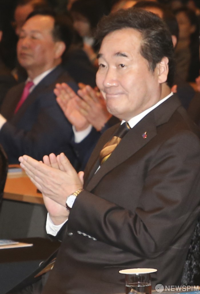 [서울=뉴스핌] 이한결 인턴기자 = 이낙연 국무총리가 12일 오전 서울 여의도 중소기업중앙회에서 열린 청년 스마트 일자리 프로젝트 선포식에 참석하여 중소기업 대표들의 발표에 박수를 치고 있다. 2019.04.12