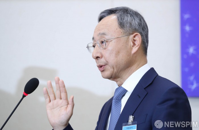 [서울=뉴스핌] 김학선 기자 = 황창규 KT 회장이 17일 국회에서 열린 KT 화재원인 규명 및 방지대책에 대한 청문회에 증인으로 출석해 선서하고 있다. 2019.04.17 yooksa@newspim.com