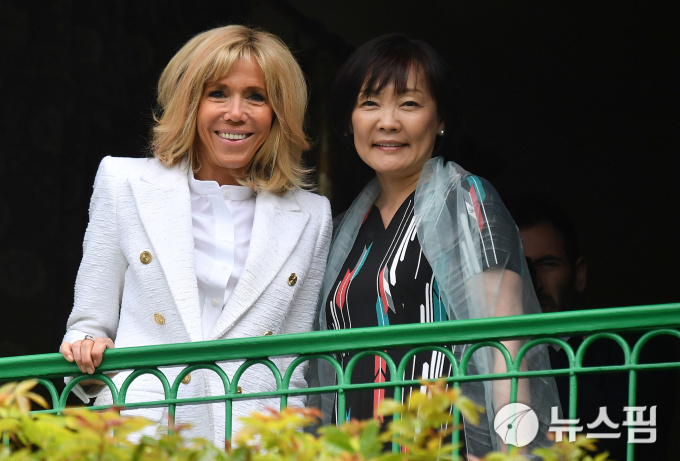 | [지베르니 로이터=뉴스핌] 김민정 기자 = 23일(현지시간) 프랑스를 방문한 아베 신조 (安倍晋三) 일본 총리의 부인 아키에((昭惠) 여사와 에마뉘엘 마크롱 프랑스 대통령의 부인 브리짓 마크롱 여사가 지베르니에 위치한 프랑스 인상파 화가 클로드 모네의 집을 방문해 미소 짓고 있다. 2019.4.23. |