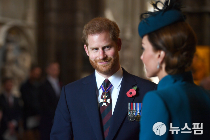 | [런던 로이터=뉴스핌] 김민정 기자 = 25일(현지시간) 영국 해리 왕자와 케이트 미들턴 왕세손비가 런던 웨스트민스터 성당에서 열린 앤잭 기념일 행사에 참석했다. 2019.4.25. |