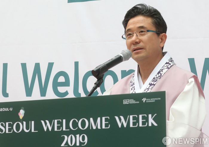 [서울=뉴스핌] 정일구 기자 = 주용태 서울시 관광체육국장이 26일 오전 서울 중구 명동관광정보센터에서 열린 외국인 관광객 환대주간 개막식에서 인사말을 하고 있다. 서울시는 이날부터 5월 6일까지 11일간을 '2019년 외국인 관광객 환대주간'으로 지정하고 외국인 손님을 맞이하기 위한 대대적인 환대 행사를 개최한다. 2019.04.26 mironj19@newspim.com