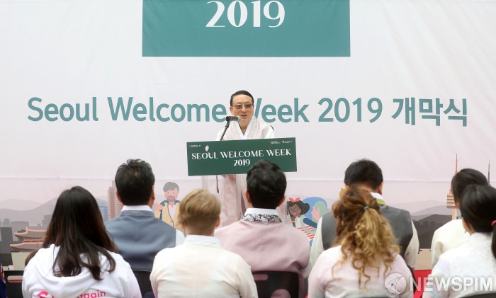 [서울=뉴스핌] 정일구 기자 = 남상만 서울시관광협회장이 26일 오전 서울 중구 명동관광정보센터에서 열린 외국인 관광객 환대주간 개막식에서 인사말을 하고 있다. 서울시는 이날부터 5월 6일까지 11일간을 '2019년 외국인 관광객 환대주간'으로 지정하고 외국인 손님을 맞이하기 위한 대대적인 환대 행사를 개최한다. 2019.04.26 mironj19@newspim.com