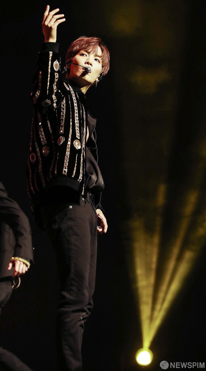 [서울=뉴스핌] 윤창빈 기자 = 그룹 뉴이스트(NU'EST) JR이 29일 오후 서울 용산구 블루스퀘어에서 열린 미니 6집 ‘Happily Ever After(해필리 에버 애프터)’ 발매 기념 쇼케이스에서 화려한 무대를 보여주고 있다. 미니 6집 ‘Happily Ever After(해필리 에버 애프터)’는 뉴이스트가 약 3년 만에 선보이는 완전체 앨범으로 타이틀곡 ‘BET BET’을 포함해 총 7개의 트랙이 수록돼 있다. 2019.04.29 pangbin@newspim.com