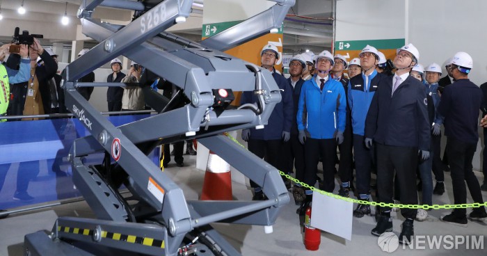[서울=뉴스핌] 최상수 기자 = 이재갑 고용노동부 장관이 8일 오전 서울 강남구 개포시영아파트 재건축 현장에서 열린 10대 건설사 안전경영 선언식을 마친 뒤 건설 현장을 둘러보고 있다. 2019.05.08 kilroy023@newspim.com