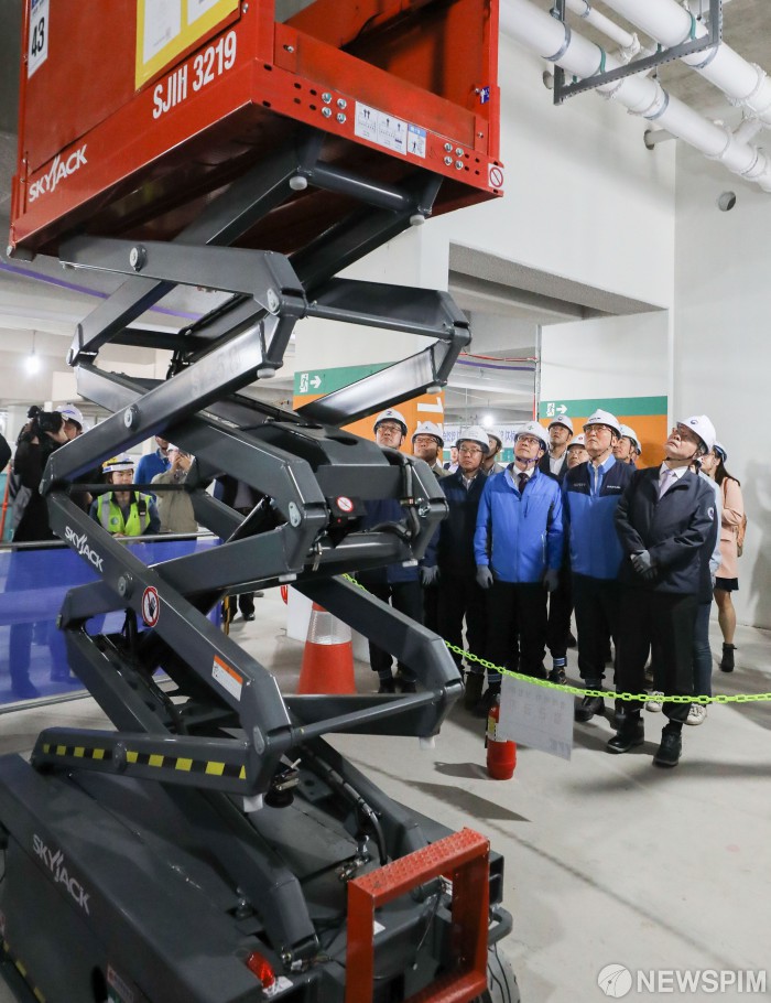 [서울=뉴스핌] 최상수 기자 = 이재갑 고용노동부 장관이 8일 오전 서울 강남구 개포시영아파트 재건축 현장에서 열린 10대 건설사 안전경영 선언식을 마친 뒤 건설 현장을 둘러보고 있다. 2019.05.08 kilroy023@newspim.com