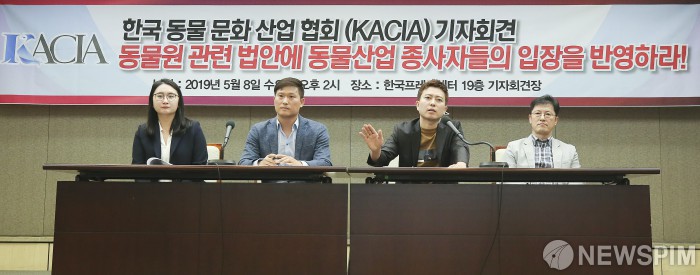 [서울=뉴스핌] 이형석 기자 = 지효연 한국동물문화산업협회 회장이 8일 오후 서울 중구 프레스센터에서 열린 한국동물문화산업협회(KACIA) 창립발대식 및 기자회견에서 발언을 하고 있다. 2019.05.08 leehs@newspim.com