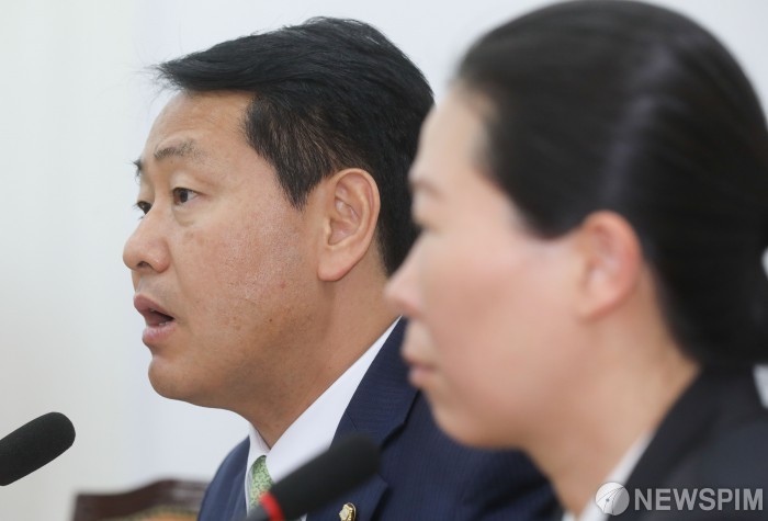 [서울=뉴스핌] 최상수 기자 = 김관영 바른미래당 원내대표, 권은희 정책위의장이 14일 오전 서울 여의도 국회에서 고별 기자간담회를 열고 있다. 2019.05.14 kilroy023@newspim.com