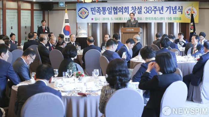[서울=뉴스핌] 이형석 기자 = 천해성 통일부 차관이 14일 오전 서울 중구 한국프레스센터에서 열린 민족통일협의회 창설 38주년 기념식에서 축사를 하고 있다. 2019.05.14 leehs@newspim.com