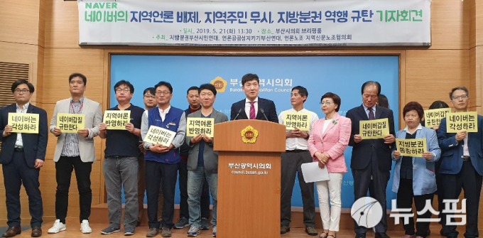 [부산=뉴스핌] 남동현 기자 = 지방분권부산시민연대는 21일 오후 1시 30분 부산시의회 3층 브리핑룸에서 기자회견을 열고 '네이버의 지역언론 배제, 지역주민 무시, 지방분권 역행을 규탄한다"고 밝혔다.