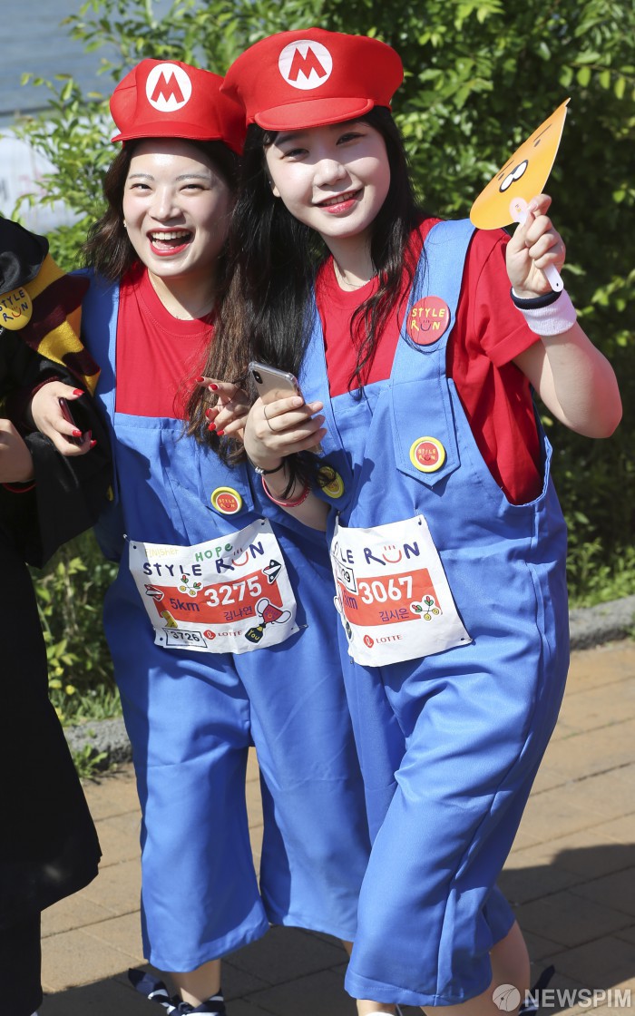 [서울=뉴스핌] 이형석 기자 = 26일 오전 서울 광진구 뚝섬 한강공원에서 열린 롯데 스타일런에서 이색 복장을 한 참가자들이 달리기를 하고 있다. 2019.05.26 leehs@newspim.com