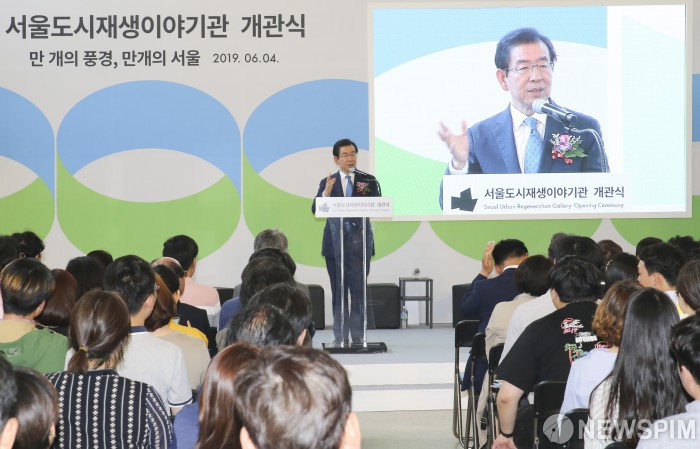 [서울=뉴스핌] 이한결 기자 = 박원순 서울시장이 4일 오후 서울 종로구 돈의문박물관마을에서 열린 ‘서울도시재생이야기관 개관식’에서 인사말을 하고 있다. 2019.06.04 alwaysame@newspim.com