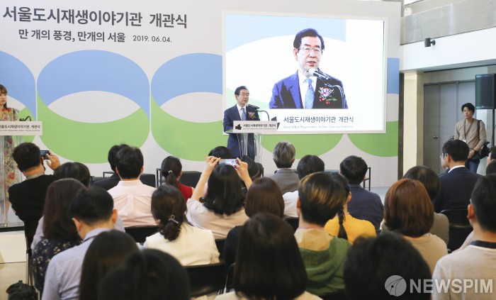 [서울=뉴스핌] 이한결 기자 = 박원순 서울시장이 4일 오후 서울 종로구 돈의문박물관마을에서 열린 ‘서울도시재생이야기관 개관식’에서 인사말을 하고 있다. 2019.06.04 alwaysame@newspim.com