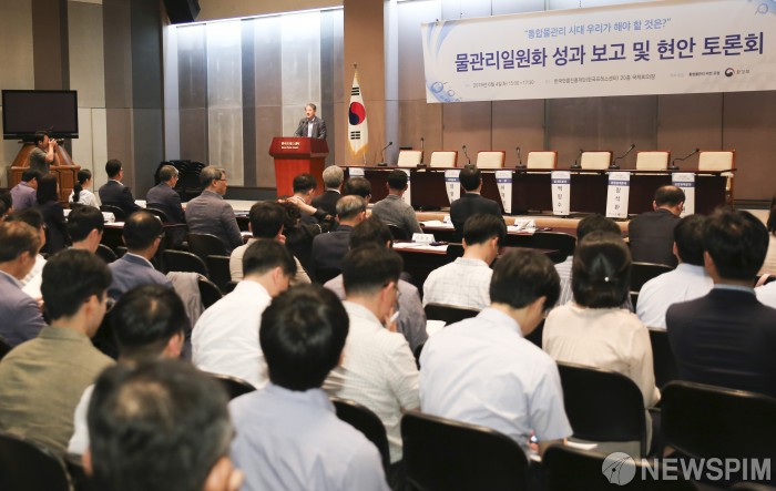 [서울=뉴스핌] 이한결 기자 = 박천규 환경부 차관이 4일 오후 서울 중구 한국프레스센터에서 열린 ‘물관리일원화 성과 보고 및 현안 토론회’에서 축사를 하고 있다. 2019.06.04 alwaysame@newspim.com