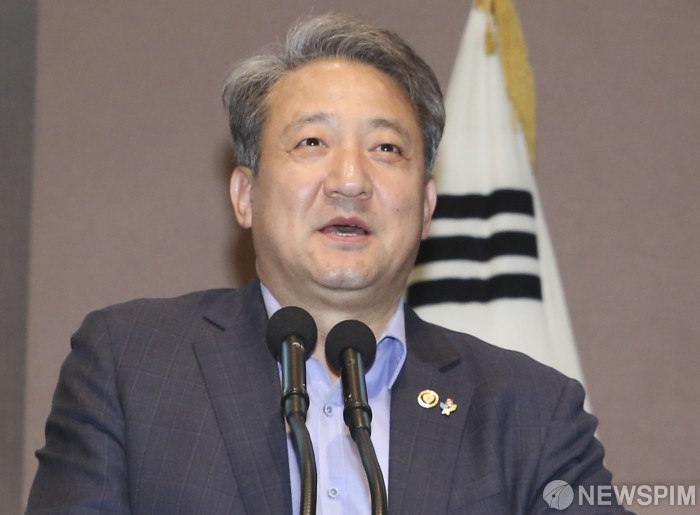 [서울=뉴스핌] 이한결 기자 = 박천규 환경부 차관이 4일 오후 서울 중구 한국프레스센터에서 열린 ‘물관리일원화 성과 보고 및 현안 토론회’에서 축사를 하고 있다. 2019.06.04 alwaysame@newspim.com