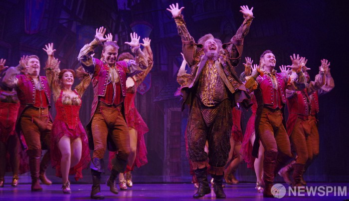 [서울=뉴스핌] 백인혁 기자 = 배우 그렉 캘러패터스(토마스 노스트라다무스 역)가 11일 오후 서울 중구 충무아트센터 대극장에서 열린 뮤지컬 '썸씽로튼' 프레스콜에서 열정적인 무대를 선보이고 있다. 2019.06.11 dlsgur9757@newspim.com