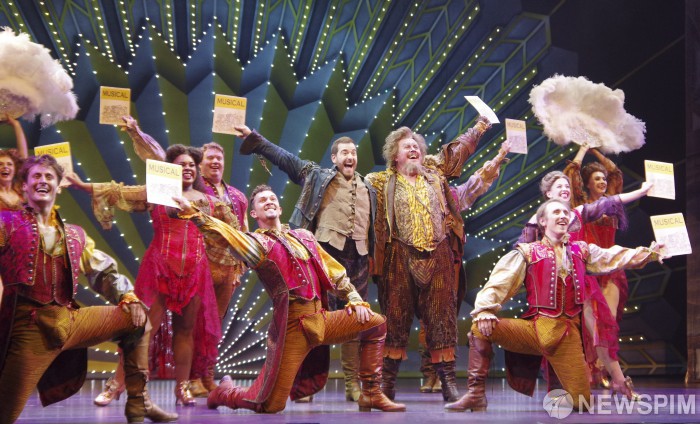 [서울=뉴스핌] 백인혁 기자 = 배우 매튜 제니스(닉 바텀 역)와 그렉 캘러패터스(토마스 노스트라다무스 역)가 11일 오후 서울 중구 충무아트센터 대극장에서 열린 뮤지컬 '썸씽로튼' 프레스콜에서 열정적인 무대를 선보이고 있다. 2019.06.11 dlsgur9757@newspim.com