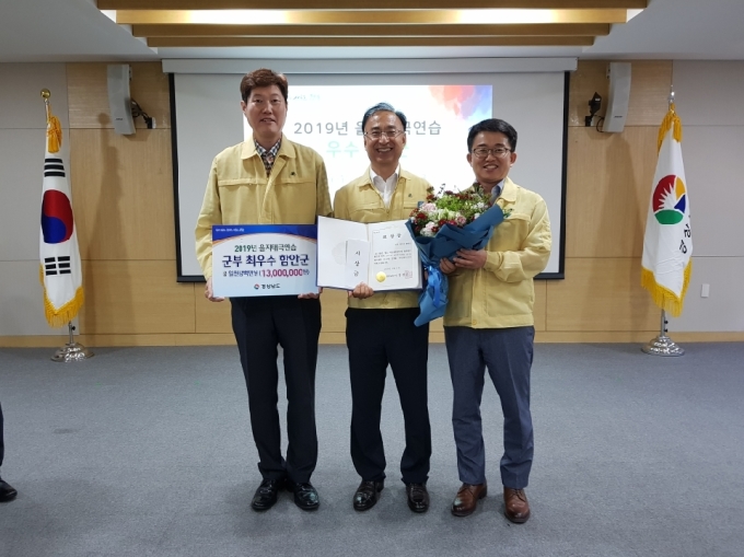 [함안=뉴스핌] 남경문 기자 = 경남 함안군은 11일 오후 경남도청 도정회의실에서 열린 '2019년 을지태극연습 강평보고회'에서 경남도 군부 최우수 기관으로 선정되어 표창과 함께 포상금 1300만원을 받았다고 12일 밝혔다.