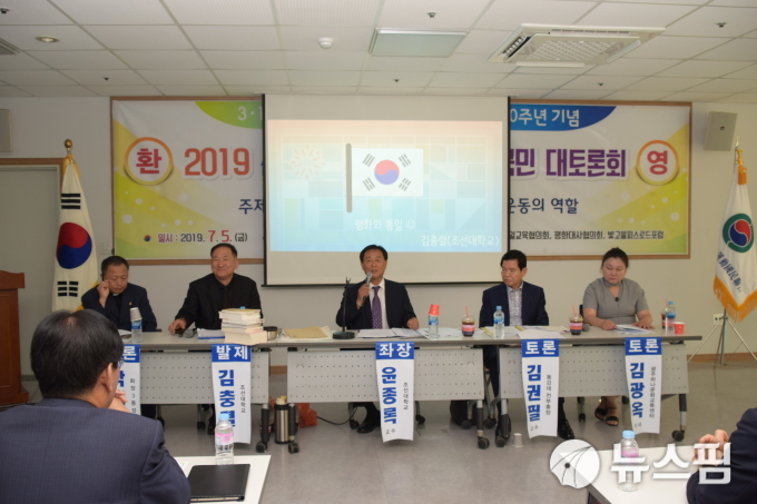 토론회에는 김진휘 남북통일운동국민연합광주회장을 비롯해 반명환 평화대사광주협의회장, 윤종록 조선대학교 교수 등과 회원 100여 명이 참여했다.