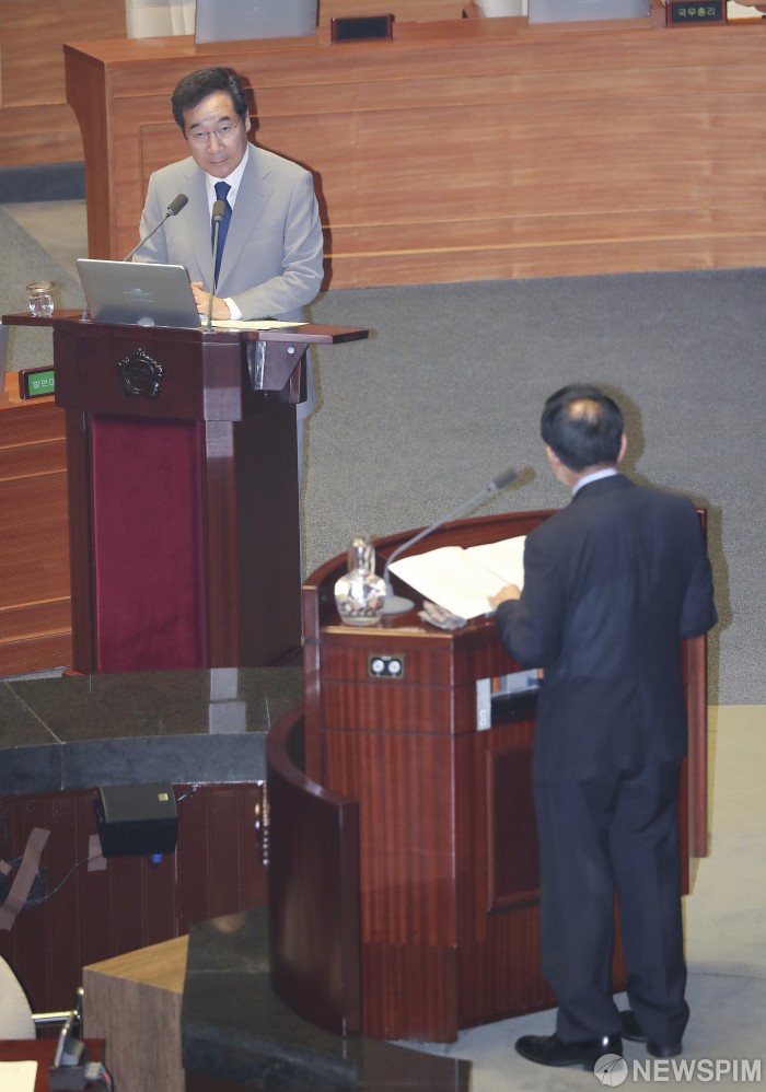 [서울=뉴스핌] 이형석 기자 = 이낙연 국무총리가 9일 오후 서울 여의도 국회에서 열린 제369회 국회 제06차 본회의에서 심재권 더불어민주당 의원의 질문에 답하고 있다. 2019.07.09 leehs@newspim.com