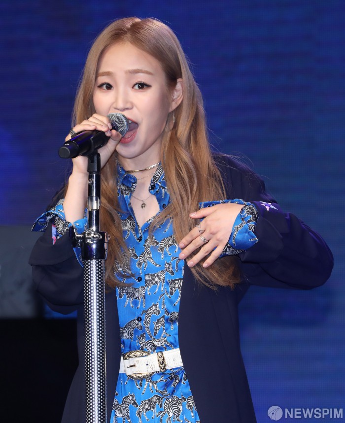 [서울=뉴스핌] 백인혁 기자 = 가수 애런이 11일 오후 서울 강남구 일지아트홀에서 열린 '애런 데뷔 쇼케이스'에서 수록곡 아름다워(LOVESOME)를 열창하고 있다. 2019.07.11 dlsgur9757@newspim.com