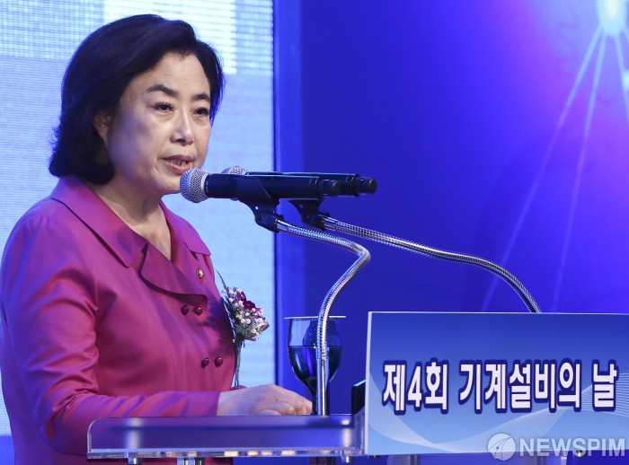 [서울=뉴스핌] 이한결 기자 = 국회 국토교통위원장인 박순자 자유한국당 의원이 18일 오후 서울 여의도 중기중앙회에서 열린 ‘제4회 기계설비의 날 기념식’에서 축사를 마친 뒤 국토교통위원장 사퇴 거부 논란과 관련해 신상 발언을 하고 있다. 2019.07.18 alwaysame@newspim.com
