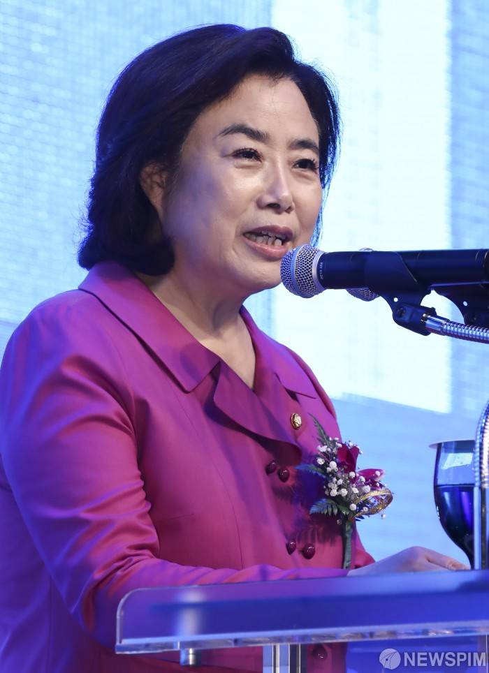 [서울=뉴스핌] 이한결 기자 = 국회 국토교통위원장인 박순자 자유한국당 의원이 18일 오후 서울 여의도 중기중앙회에서 열린 ‘제4회 기계설비의 날 기념식’에서 축사를 하고 있다. 2019.07.18 alwaysame@newspim.com