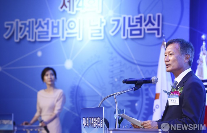 [서울=뉴스핌] 이한결 기자 = 백종윤 대한기계설비단체총연합회 회장이 18일 오후 서울 여의도 중기중앙회에서 열린 ‘제4회 기계설비의 날 기념식’에서 기념사를 하고 있다. 2019.07.18 alwaysame@newspim.com