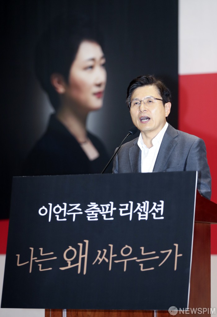 [서울=뉴스핌] 이형석 기자 = 황교안 자유한국당 대표가 22일 오후 서울 여의도 국회 의원회관에서 열린 이언주 의원의 ‘나는 왜 싸우는가’ 출판 리셉션에서 축사를 하고 있다. 2019.07.22 leehs@newspim.com