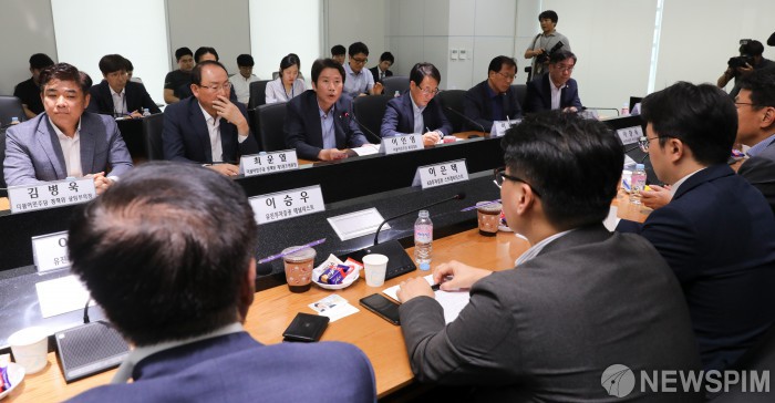 [서울=뉴스핌] 최상수 기자 = 이인영 더불어민주당 원내대표가 9일 오후 서울 여의도 The-K타워 KB투자증권에서 열린 '한국증시, 애널리스트로부터 듣는다' 간담회에서 모두발언을 하고 있다. 2019.08.09 kilroy023@newspim.com