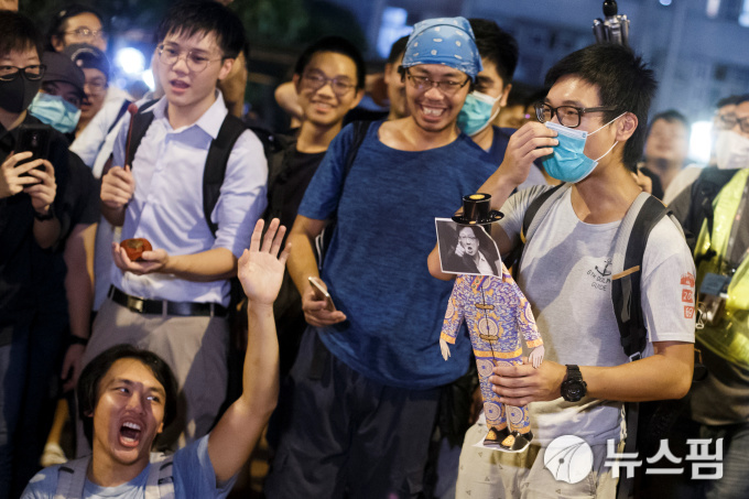 | [홍콩 로이터=뉴스핌] 민지현 기자 = 홍콩 송환법 반대 시위자들이 걸신 축제(Hungry Ghost Festival)에서 백색테러를 지지하는 발언을 한 친중파 입법회 의원 허쥔야오(何君堯)의 사진을 붙인 인형을 매장하기 전 모습. 2019.08.09. |