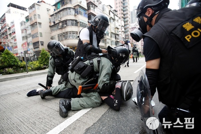 | [홍콩 로이터=뉴스핌] 권지언 기자 = 11일(현지시각) 홍콩 삼수이포역 인근에서 경찰이 시위대를 진압하고 있다. 2019.08.11 |
