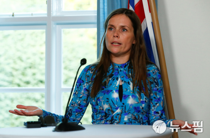 | [레이캬비크 로이터=뉴스핌] 전솔희 인턴기자 = 카트린 야콥스도티르 아이슬란드 총리가 19일(현지시간) 수도 레이캬비크에서 앙겔라 메르켈 독일 총리와의 기자회견 자리에 참석해 발언하고 있다. 2019.08.19. |