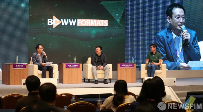 [서울=뉴스핌] 윤창빈 기자 = 박진식 중부대학교 교수사가 20일 오후 서울 강남구 코엑스에서 열린 '국제방송영상마켓(BCWW) 2019 - FORMATS & Newcon 행사에서 발표를 하고 있다. 콘텐츠, 세상과 연결하다를 주제로 열린 국제방송영상마켓은 국내 우수한 방송영상콘텐츠를 세계 시장에 소개하고 수출 기회를 제공하기 위해 문화체육관광부가 주최하고 한국콘텐츠진흥원이 주관한다. 2019.08.20 pangbin@newspim.com