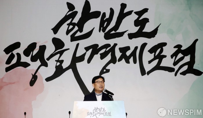 [서울=뉴스핌] 정일구 기자 = 정인성 한반도평화경제포럼 이사장이 20일 오후 서울 영등포구 전경련 컨퍼런스센터에서 열린 '2019 한반도평화경제포럼 창립세미나'에서 환영사를 하고 있다. 2019.08.20 mironj19@newspim.com