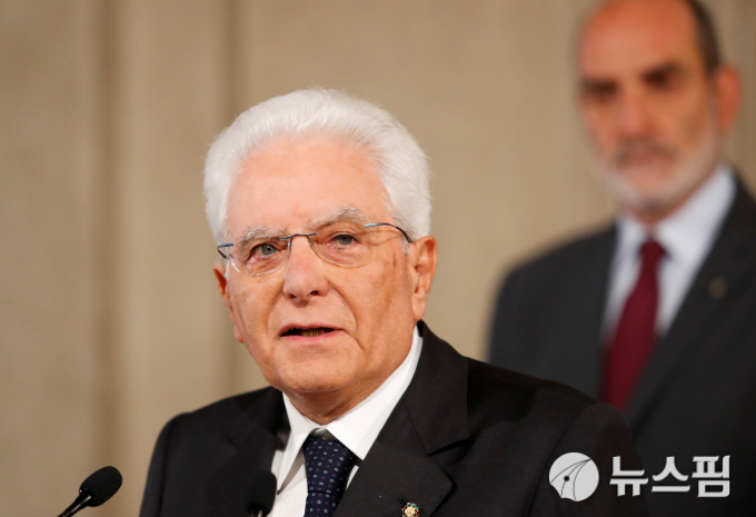 | [로마 로이터=뉴스핌] 전솔희 인턴기자 = 세르조 마타렐라 이탈리아 대통령이 22일(현지시간) 로마 대통령궁에서 취재진의 질문에 답하고 있다. 2019.08.22. |